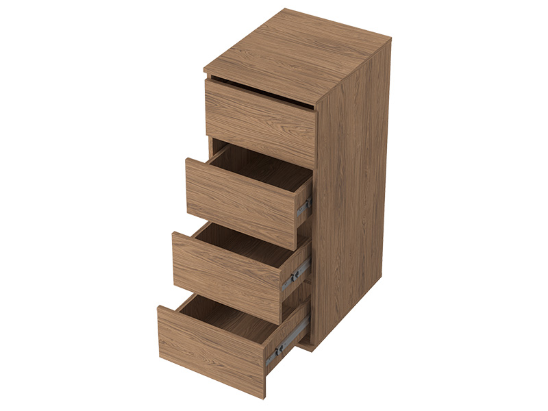 Сами модули выполнены из экологичного ЛДСП толщиной 16 мм, представлены в 13 декорах и внутри имеют шариковые направляющие Boyard, которые рассчитаны на нагрузку до 30 кг и выдерживают более 50 000 циклов открывания и закрывания.