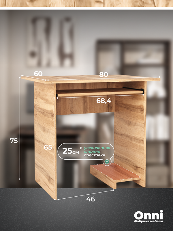 Одно из ключевых преимуществ модели — увеличенная ширина подставки для системного блока, которая достигает 46 см. Это обеспечивает надежную и удобную установку современного компьютерного оборудования. Стол поставляется полностью готовым к сборке, все необходимые крепежные элементы входят в комплект.