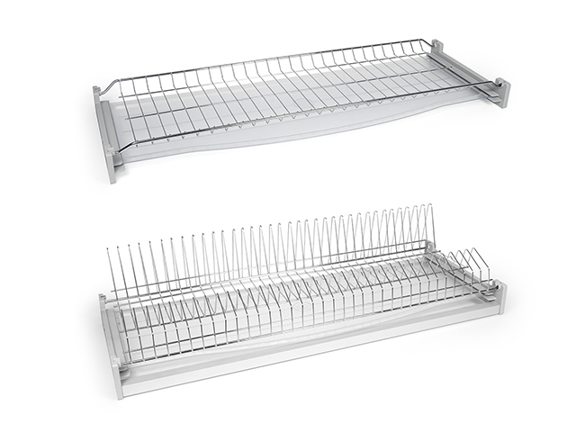STUDIO 16 SU08 — сушка для посуды в верхнюю базу из прутковой нержавеющей стали для мебели из плит толщиной 16 мм. Модель монтируется в короб без малейших зазоров. Подходит для коробов без дна (рекомендовано) и "глухих".
