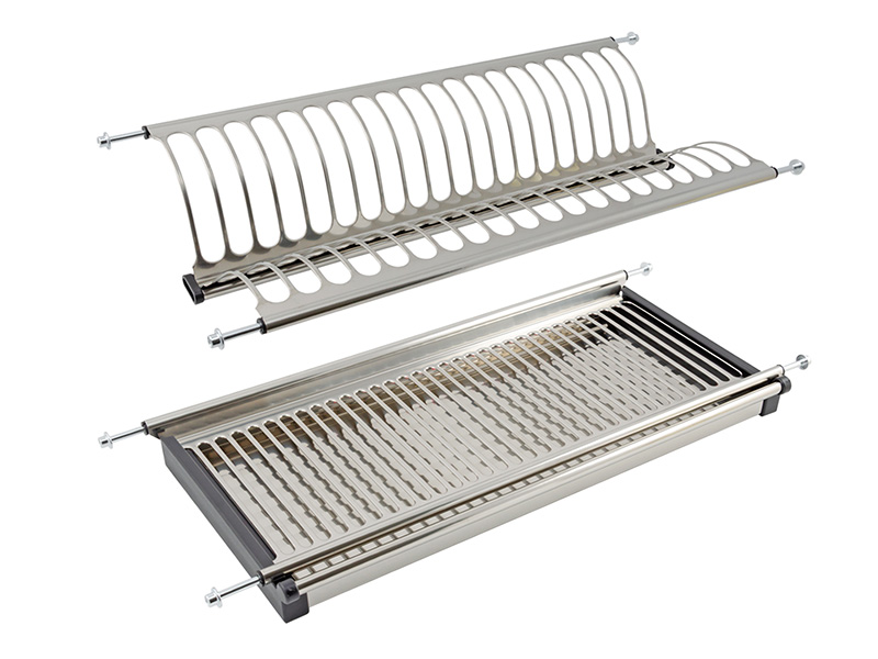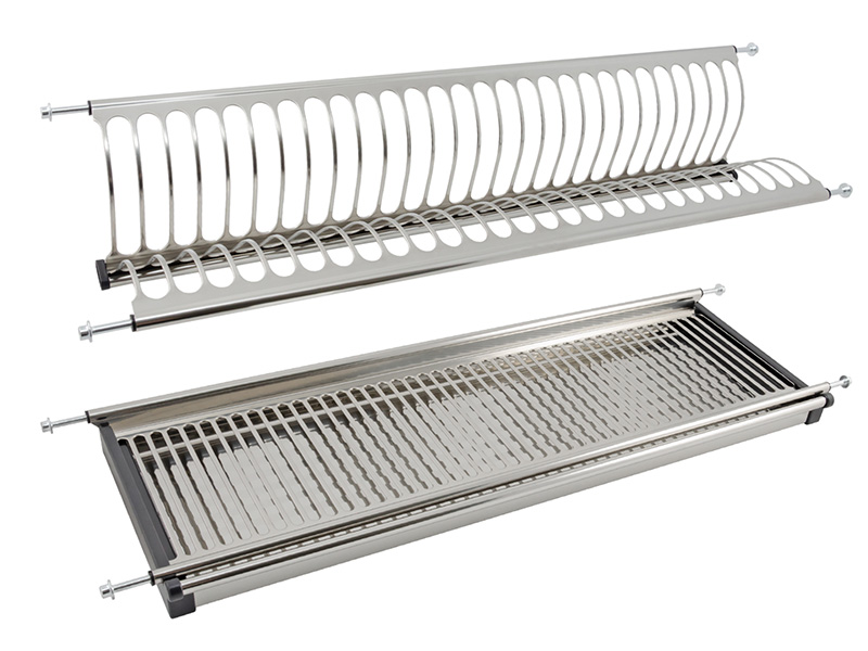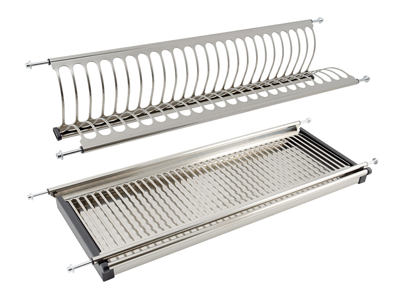 Двухуровневая сушка для посуды быстрого монтажа для современных кухонных гарнитуров позволяет размещать значительное количество вымытой посуды.