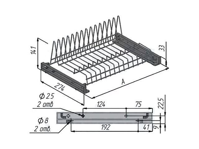 Посудосушитель без рамки Вид товара: для тарелок Установка: верхний ярус Примечание: для ДСП толщиной 16 и 18 мм Материал: металл, пластик Поддон приобретается отдельно: см. рекомендуемый товар