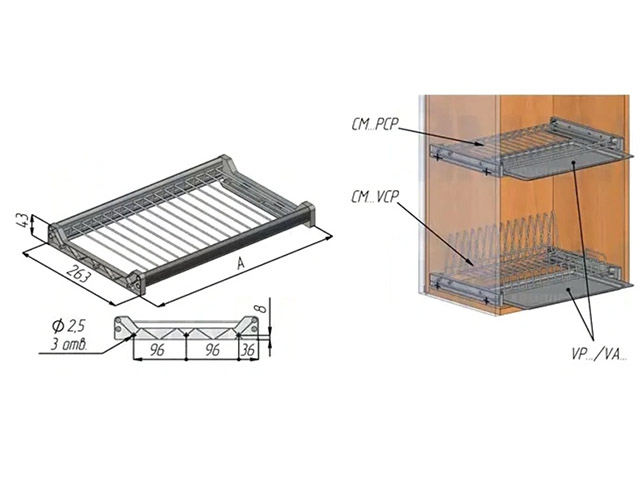 Посудосушитель для тарелок 600 мм хром алюминий рифленый арт.CM60VCP