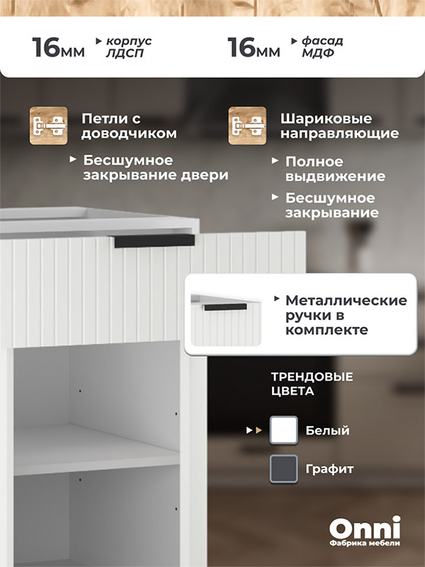 Шкаф напольный 600мм с полкой 2-х дверный и ящиком ШН Вива1 Белый