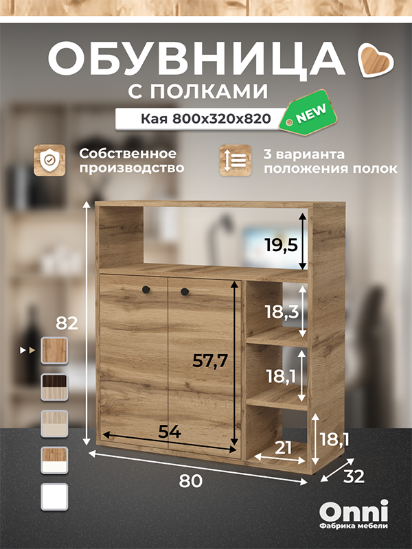 - Стильный дизайн: Тёплый цвет «Дуб Вотан» и лаконичные формы делают обувницу не просто системой хранения, а украшением интерьера.