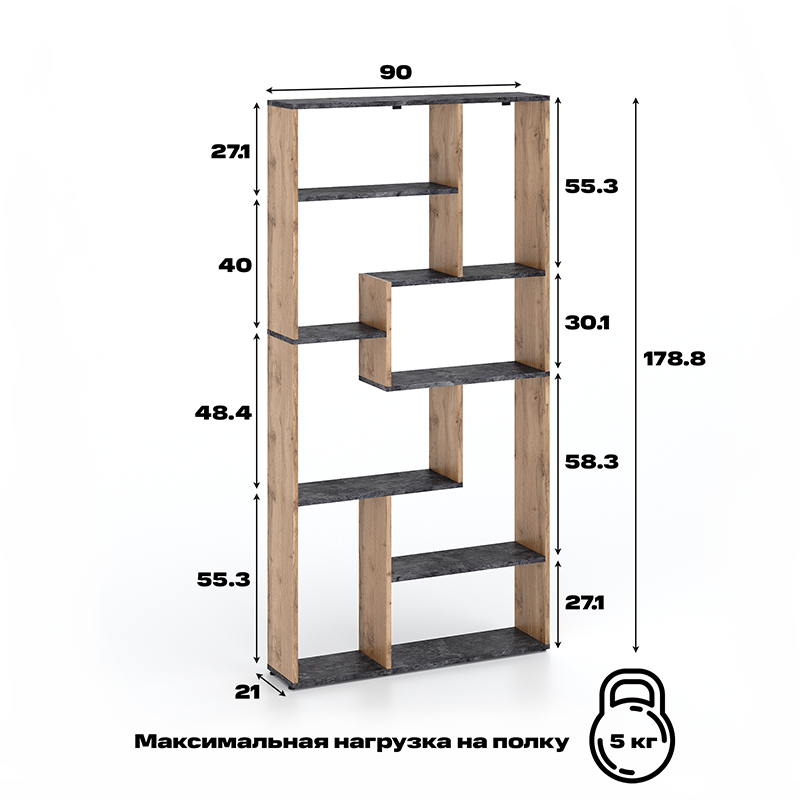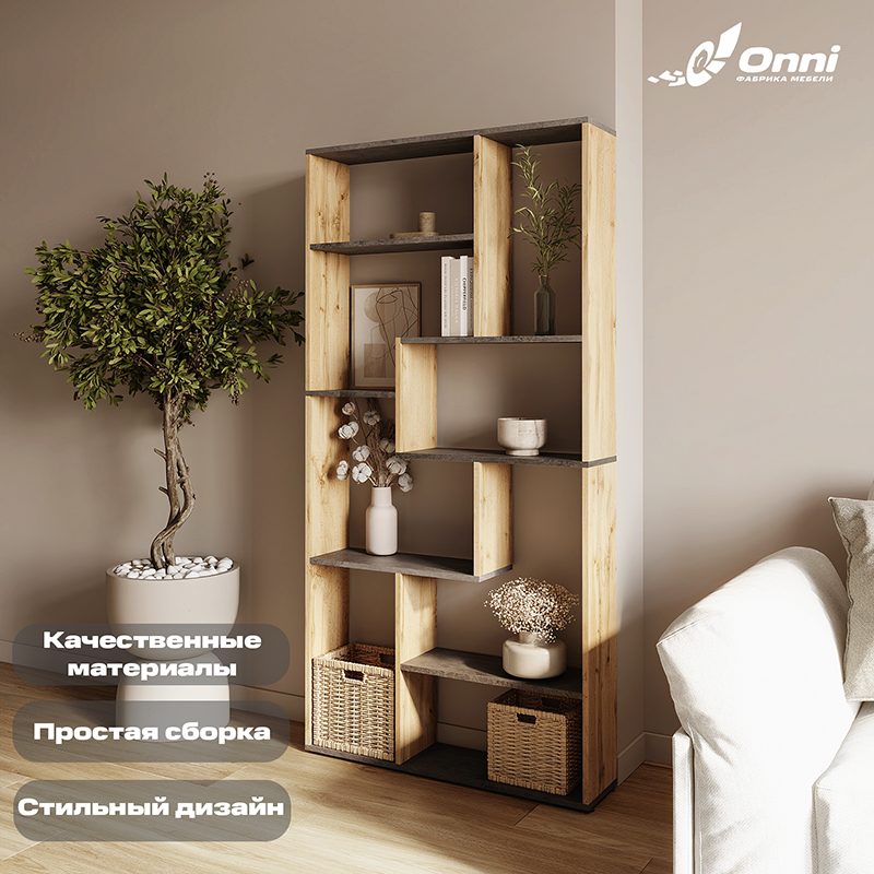 Идеально подходит для зонирования помещений — его можно использовать как элегантную перегородку, отделяющую рабочую зону от спальной или гостиной. Открытые полки предоставляют безграничные возможности для демонстрации и хранения: книг, декора, комнатных растений, коллекций, фотографий в рамках или корзин для мелочей.
