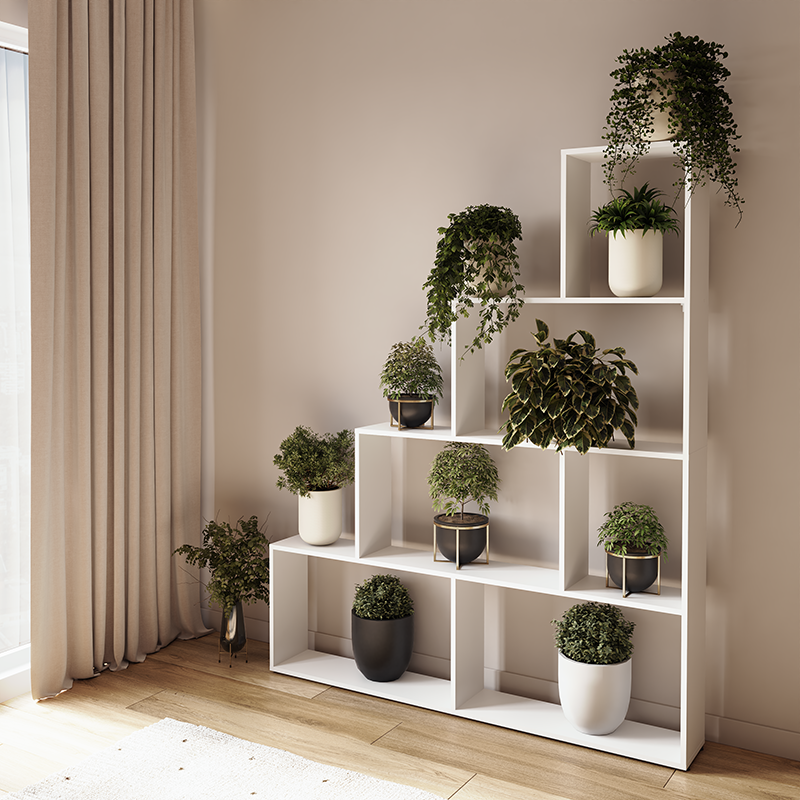 Открытые полки предоставляют неограниченные возможности для хранения и демонстрации: от обширной библиотеки и коллекций до комнатных растений, декора, игрушек или системных блоков. Стеллаж можно использовать как элегантную перегородку, которая не «крадет» свет и создает ощущение открытости, одновременно предоставляя множество полезных площадей.
