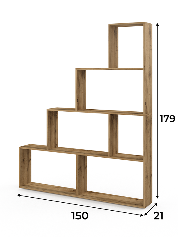 Высокий стеллаж «Имели» — это современное и универсальное решение для создания порядка и стиля в любом интерьере. Его впечатляющая высота (почти 1.8 м) и значительная ширина (1.5 м) при минимальной глубине (21 см) делают его идеальным инструментом для зонирования пространства, особенно в студиях, однокомнатных квартирах или просторных комнатах, где нужно визуально разделить функциональные области.