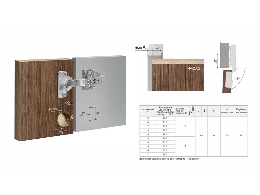 - Быстрый монтаж Clip-on и система QuickClick для монтажа петли с одной или другой стороны планки на усмотрение сборщика;
