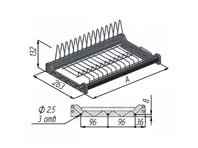 Посудосушитель для тарелок 700 мм хром алюминий рифленый арт. CM70VCP