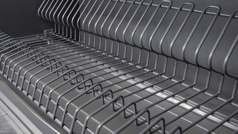 Особая форма прутков нижнего уровня позволяет по-настоящему удобно расположить в пространстве сушки большое количество посуды любого диаметра – от крошечных кофейных блюдец до габаритных сервировочных тарелок. При этом необязательно размещать посуду по центру, удобно ставить её и в дальние, и в ближние сектора сушки.