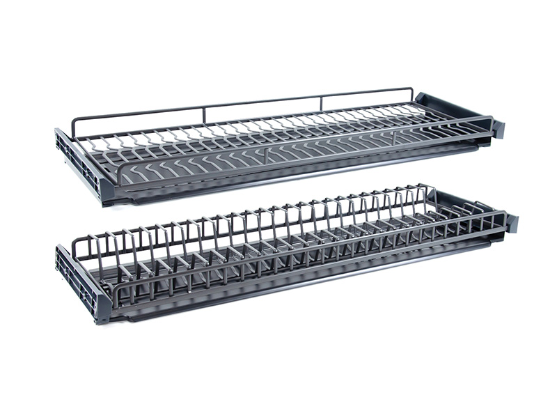 Модель предусматривает лёгкую регулировку и надёжную фиксацию положения решёток с помощью специального ключа, который идёт в комплекте. Благодаря регулировке и фиксации возможно достичь идеального, неподвижного положения решёток в пазах пластиковых держателей. Весь крепёж закрыт крышками держателей и надёжно защищен от влаги. Сушка подойдёт для кухонь современных стилей, в том числе лофт.
