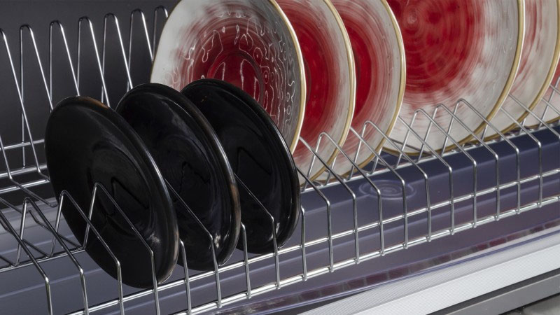 STUDIO 16 SU08 — сушка для посуды в верхнюю базу из прутковой нержавеющей стали для мебели из плит толщиной 16 мм. Модель монтируется в короб без малейших зазоров. Подходит для коробов без дна (рекомендовано) и "глухих".