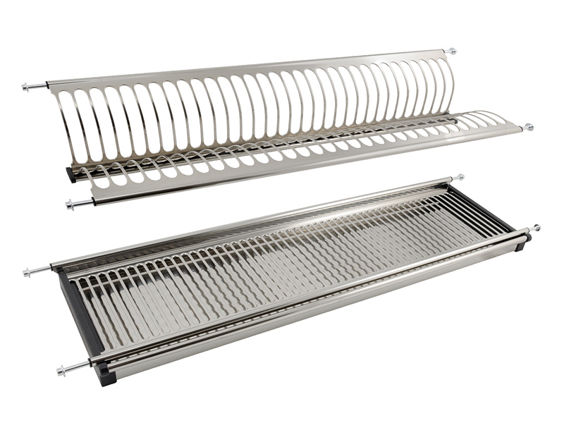 Двухуровневая сушка для посуды быстрого монтажа для современных кухонных гарнитуров позволяет размещать значительное количество вымытой посуды.