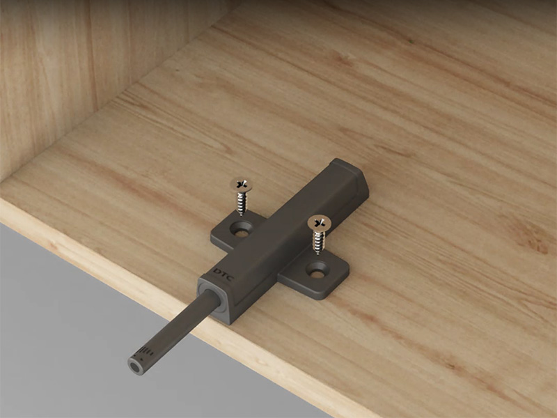 Толкатель PUSH LATCH от DTC с магнитом предназначен для шкафов с распашными фасадами и подходит для установки с петлями без пружины или с пружинами обратного действия.