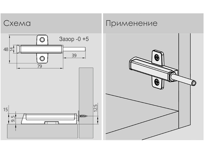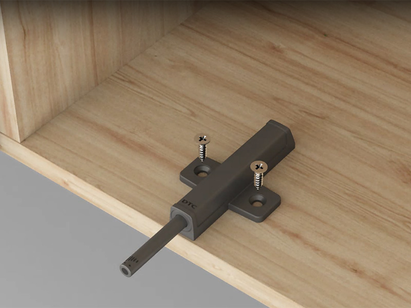 Механизм позволяет открывать и закрывать фасады без мебельных ручек с помощью легкого нажатия, а магнит удерживает фасад от излишне резкого открытия.