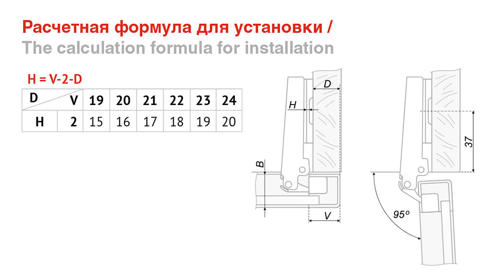 Петля для накладного фасада из алюм. профиля BOYARD H660A/0112 Slide-on 95° с планкой H2 без доводчика