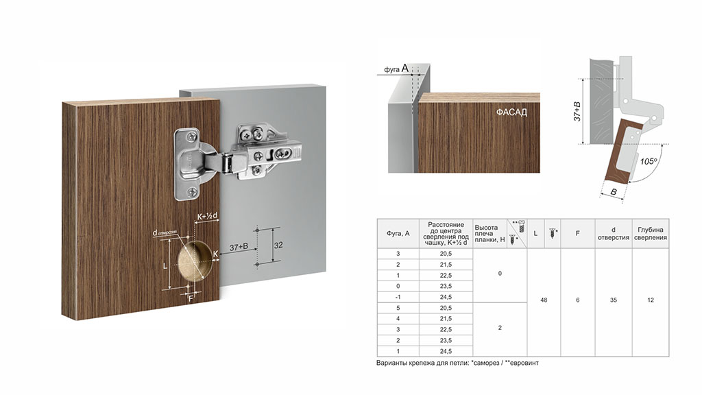 Петля для вкладной двери NEO CASUAL H305C02 Clip-on 105° с доводчиком